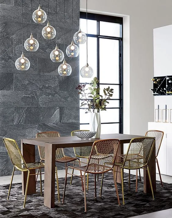 The dining room itself is quite interesting, combining elements of both rustic and modern design.